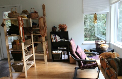 After months of planning, preparation, painting, and moving, my new space is officially open and ready to accommodate this mushroom person. The most stressful part of the whole transition was having to sort through all the fibre I’d accumulated in the eight years since I started spinning. As any fibre person will attest, a stash is not a static thing—it reproduces in the dark, silent hours, apparently exponentially, until it has occupied space in every room of the house. (Yes, even our guest bathroom had fleece spread out to dry on the floor.)