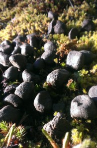 It’s probably just as well Silas wasn’t along with us, as he would have been unable to tear himself away from these two discoveries: bones cleaned down to the bone (probably by coyotes) and a nice pile of elk poo (recognized by its large size and the distinctive “thumbprint” in each nugget).