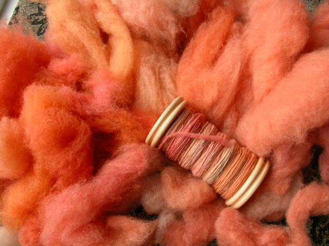 It’s time I started doing something about my stash – well, some if it, anyway – so I gathered up all the bits and pieces of roving that went through the dermocybe dyepots over the last two years.