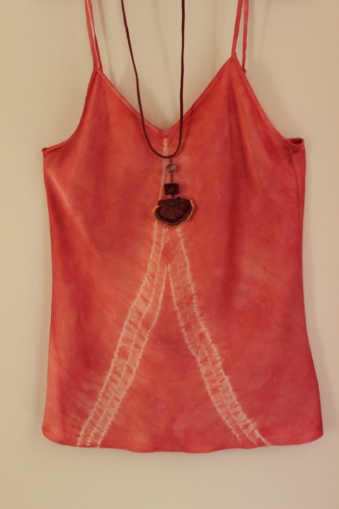 Last season was a poor one for the dermocybes, so I saved up what I had collected until I could decide what to do with them. I’ve been playing with silk lately and thought perhaps a camisole would be just the right garment for a good dermocybe red.
