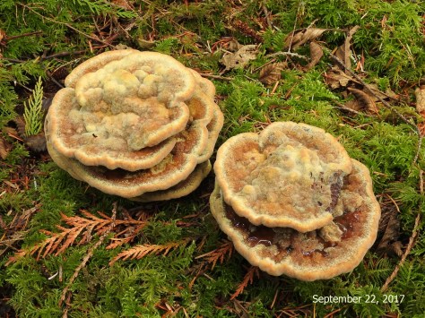 I feel blessed to be living with a rainforest just outside my door, never more so than during mushroom season. Even though this year has been terribly dry and the season late, with few mushrooms to be seen so far, the Phaeolus schweinitzii, or Dyer’s Polypore, have proved the exception, guaranteeing some golden dyepots this year, at least.