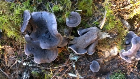 This might have been a good year for Sarcodon fuscoindicus—Violet Hedgehog—had the spot where I can usually hope to find a dozen or more good specimens (which happens to be at the side of a logging road) not been covered by two feet of gravel when the road was graded to make the area more accessible to logging trucks. That, combined with what seems to be a disturbing trend toward longer, dryer summers, led to my having just six smallish ones to play with this year.