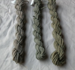 The small skeins from the workshop obviously came from a weaker dyebath; the mordants are alum, iron and copper.