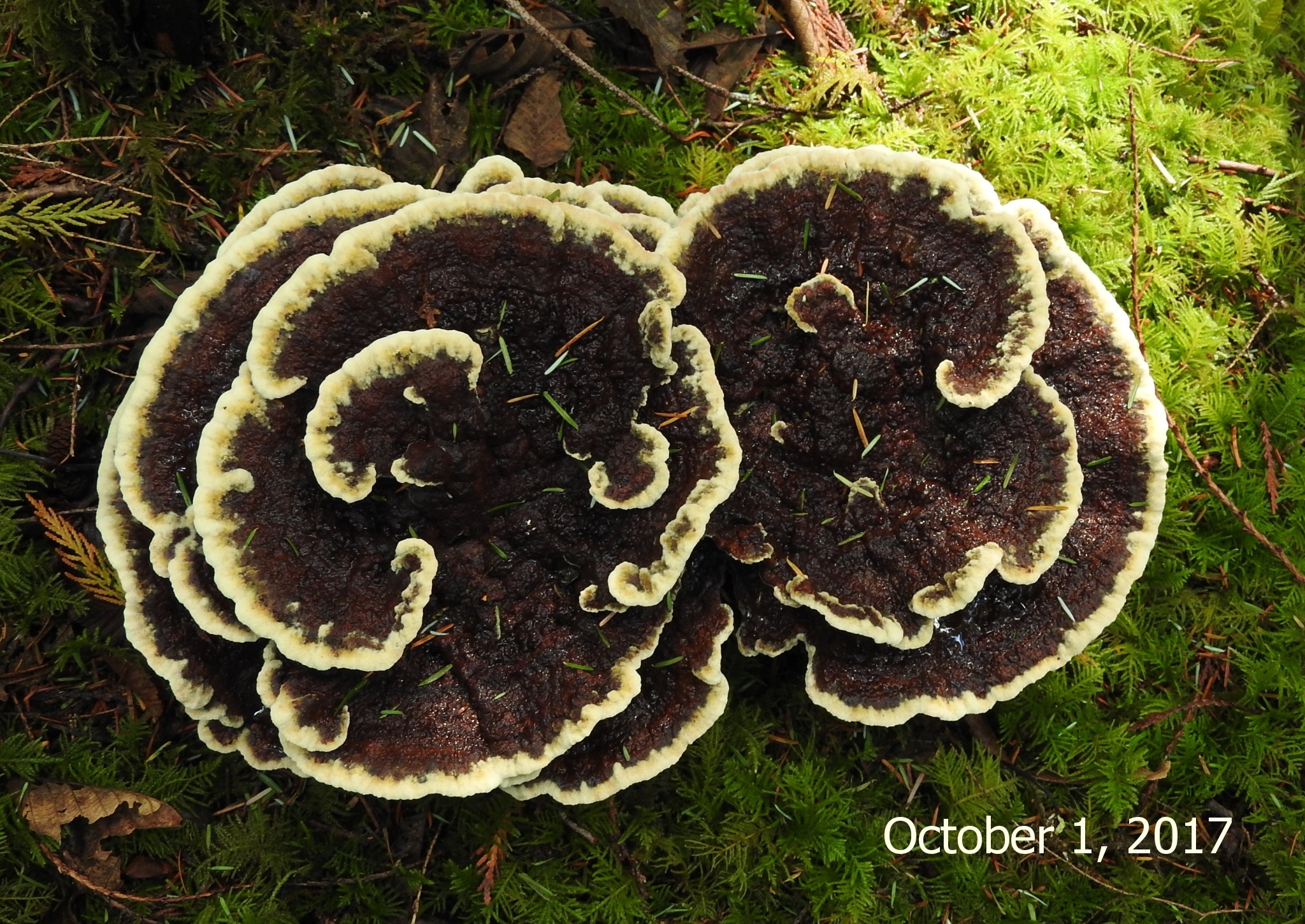 The mushroom weighed in at 150 grams, but it was still quite wet, so I used just 50 grams of wool yarn. First I put the mushroom in a large jar and just covered it with water, then covered it loosely with a piece of foil; then the iron-mordanted fibre went into another jar of plain water. Both jars went into my largest soup pot, with a cake-cooling rack underneath (I could have also used a folded tea towel to keep the jar from direct contact with the bottom of the pot). Then I added water to the pot until it reached the level of the jars’ contents.